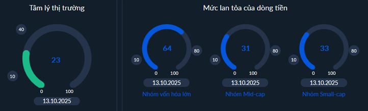 - Tác động của dòng tiền đã có sử cải thiện trong phiên đầu tuần nhưng chưa đạt trạng thái bền vững trong đó sự dẫn dắt của nhóm vốn hóa lớn có sự hồi phục khi hướng trở lại vùng trung bình (50%). Đây cũng là động lực chính giúp chỉ số bật tăng mạnh tuy nhiên hiệu ứng lan tỏa trên diện rộng là chưa tốt khi các nhóm vốn hóa vừa và nhỏ đều chỉ ở mức kém. Như vậy, xu thế hồi phục chưa thể khẳng định và tiếp tục cần sự kiên nhẫn để xác nhận sự dịch chuyển có thể hình thành một xu hướng và bền vững.