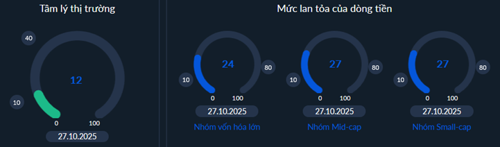 - Dòng tiền rút mạnh khỏi thị trường thể hiện rõ qua mức độ hiện diện thấp trên các nhóm cổ phiếu từ vốn hóa lớn tới nhỏ. Rõ ràng đây là một nhịp rũ mạnh đáng chú ý để vẽ lại nền giá mới cho thị trường tuy nhiên chưa đạt tới mức hấp dẫn và cạn kiệt (<10%) để chạm tới mức cạn cung ngắn hạn tạo tiền đề tốt nhất cho kịch bản tạo đáy. Cần quan sát thêm để có hành động mới đặc biệt là với các vị thế canh mua mới.