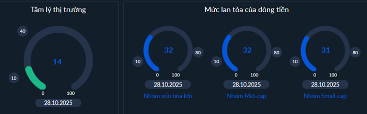 - Dòng tiền rút mạnh khỏi thị trường thể hiện rõ qua mức độ hiện diện thấp trên các nhóm cổ phiếu từ vốn hóa lớn tới nhỏ. Rõ ràng đây là một nhịp rũ mạnh đáng chú ý để vẽ lại nền giá mới cho thị trường tuy nhiên chưa đạt tới mức hấp dẫn và cạn kiệt (<10%) để chạm tới mức cạn cung ngắn hạn tạo tiền đề tốt nhất cho kịch bản tạo đáy. Cần quan sát thêm để có hành động mới đặc biệt là với các vị thế canh mua mới.