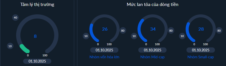 - Dòng tiền dù có cải thiện nhưng ở mức rất chậm và đang ở dưới mức trung bình (50%) trên hầu hết các nhóm cổ phiếu. Nhóm vốn hóa lớn thậm chí đang là nhóm không được dòng tiền ưa chuộng như giai đoạn trước khiến cho vai trò dẫn dắt chỉ số cũng bị ảnh hưởng. Khi nhóm vốn hóa lớn tiếp tục suy giảm dòng tiền thì chỉ số sẽ khó hồi một cách bền vững trong khi rung lắc và điều chỉnh là càng dễ xảy ra hơn.