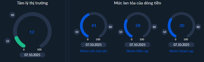 - Tác động của dòng tiền đã có sử cải thiện trong phiên đầu tuần nhưng chưa đạt trạng thái bền vững trong đó sự dẫn dắt của nhóm vốn hóa lớn có sự hồi phục khi hướng trở lại vùng trung bình (50%). Đây cũng là động lực chính giúp chỉ số bật tăng mạnh tuy nhiên hiệu ứng lan tỏa trên diện rộng là chưa tốt khi các nhóm vốn hóa vừa và nhỏ đều chỉ ở mức kém. Như vậy, xu thế hồi phục chưa thể khẳng định và tiếp tục cần sự kiên nhẫn để xác nhận sự dịch chuyển có thể hình thành một xu hướng và bền vững.