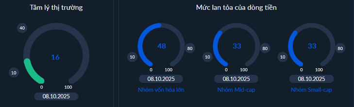 - Tác động của dòng tiền đã có sử cải thiện trong phiên đầu tuần nhưng chưa đạt trạng thái bền vững trong đó sự dẫn dắt của nhóm vốn hóa lớn có sự hồi phục khi hướng trở lại vùng trung bình (50%). Đây cũng là động lực chính giúp chỉ số bật tăng mạnh tuy nhiên hiệu ứng lan tỏa trên diện rộng là chưa tốt khi các nhóm vốn hóa vừa và nhỏ đều chỉ ở mức kém. Như vậy, xu thế hồi phục chưa thể khẳng định và tiếp tục cần sự kiên nhẫn để xác nhận sự dịch chuyển có thể hình thành một xu hướng và bền vững.